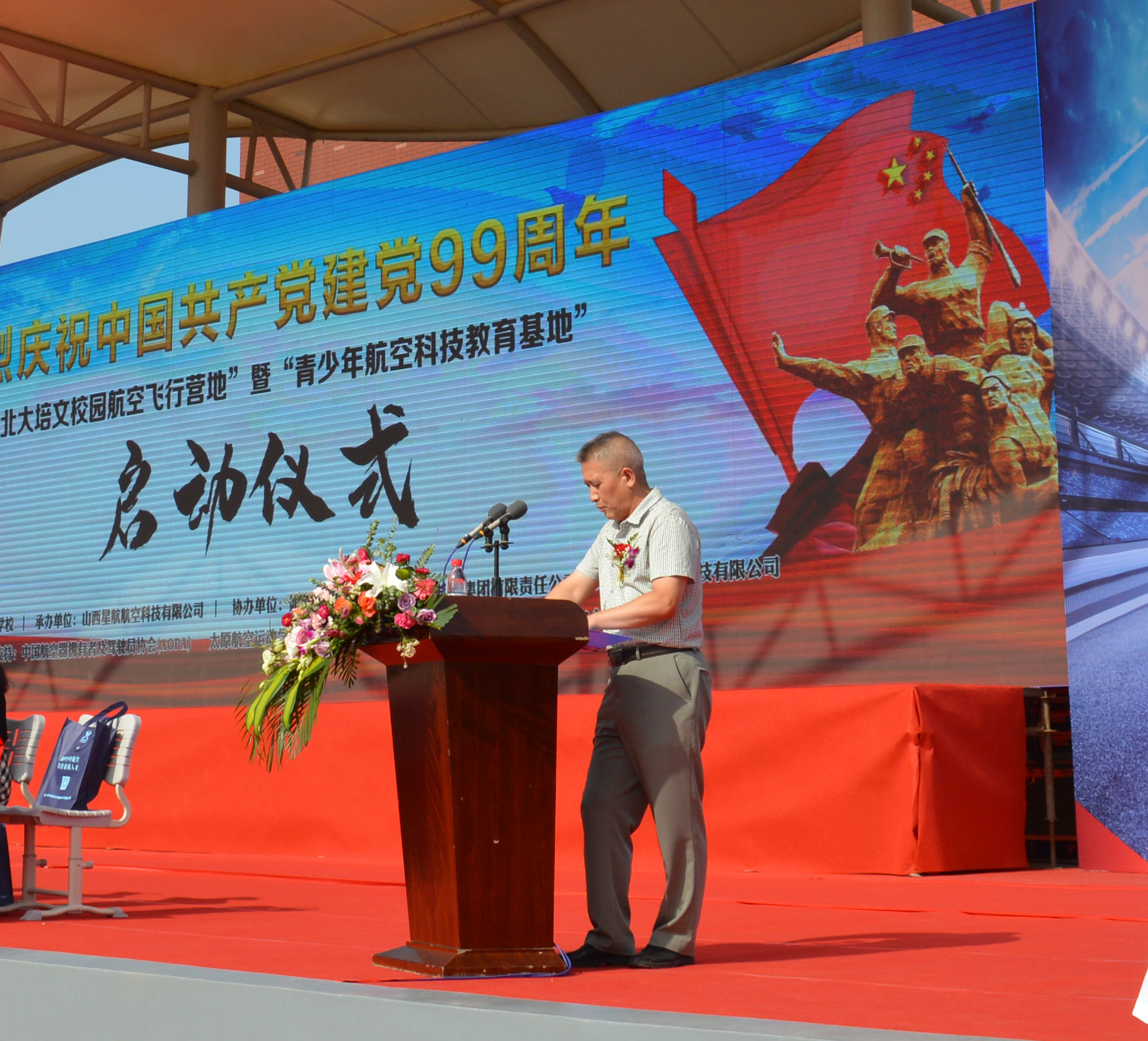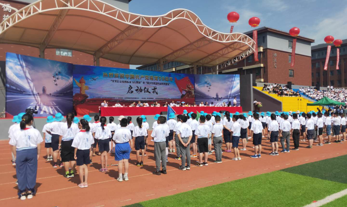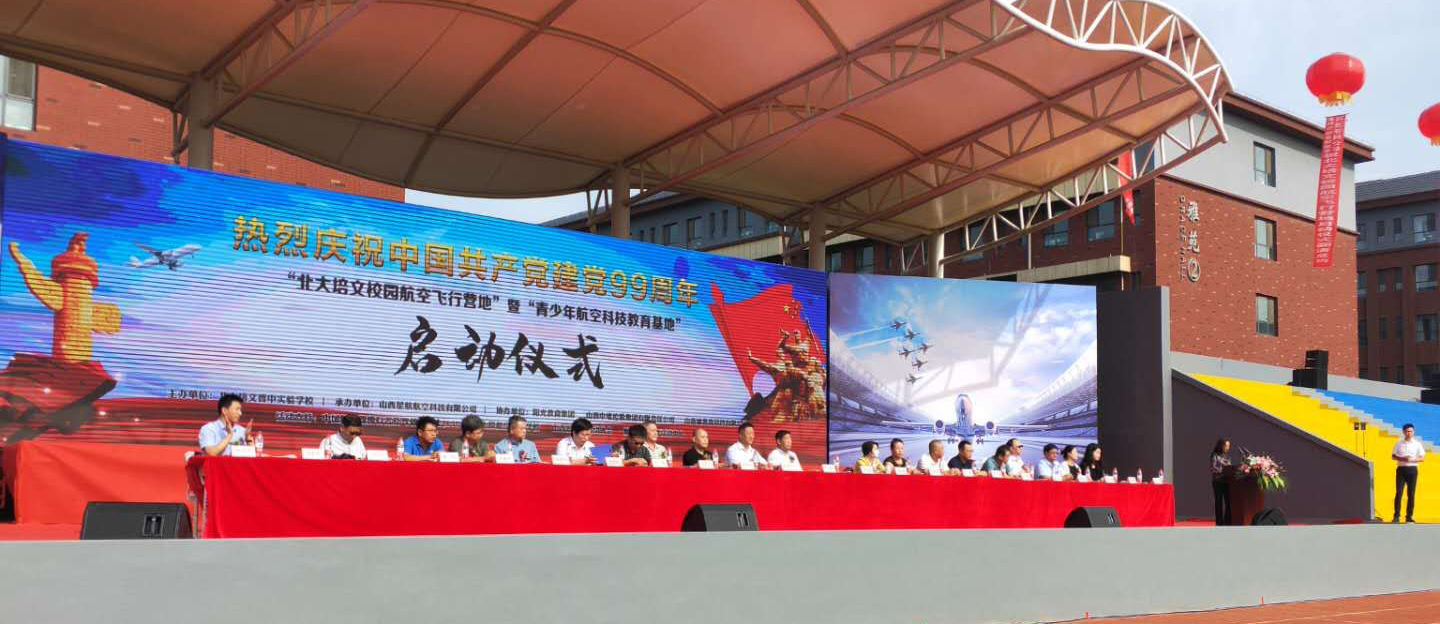 在中國共產黨誕辰99周年之際,為了進一步培養(yǎng)青少年的航空愛國精神、全面推動山西省航空特色教育發(fā)展,實現(xiàn)省通用航空產業(yè)的全鏈接。北大培文晉中實驗學校于2020年7月1日上午八點隆重舉行了“校園航空飛行營地”暨“青少年航空科技教育基地”啟動儀式。