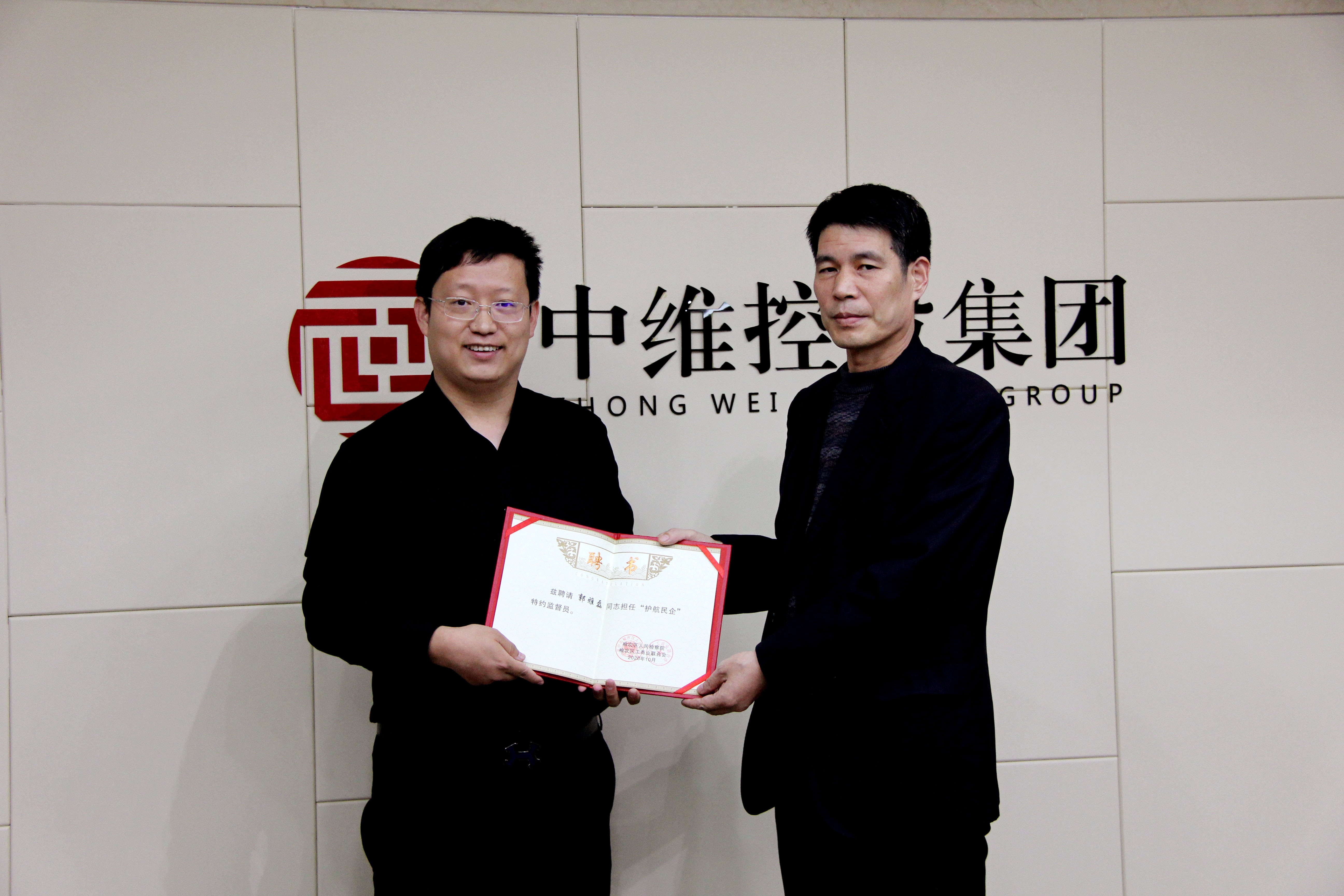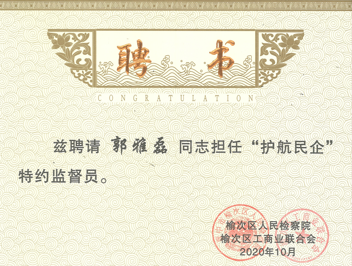 集團總裁郭雅磊受聘為“護航民企”特約監(jiān)督員,耿檢察長為郭總頒發(fā)聘書